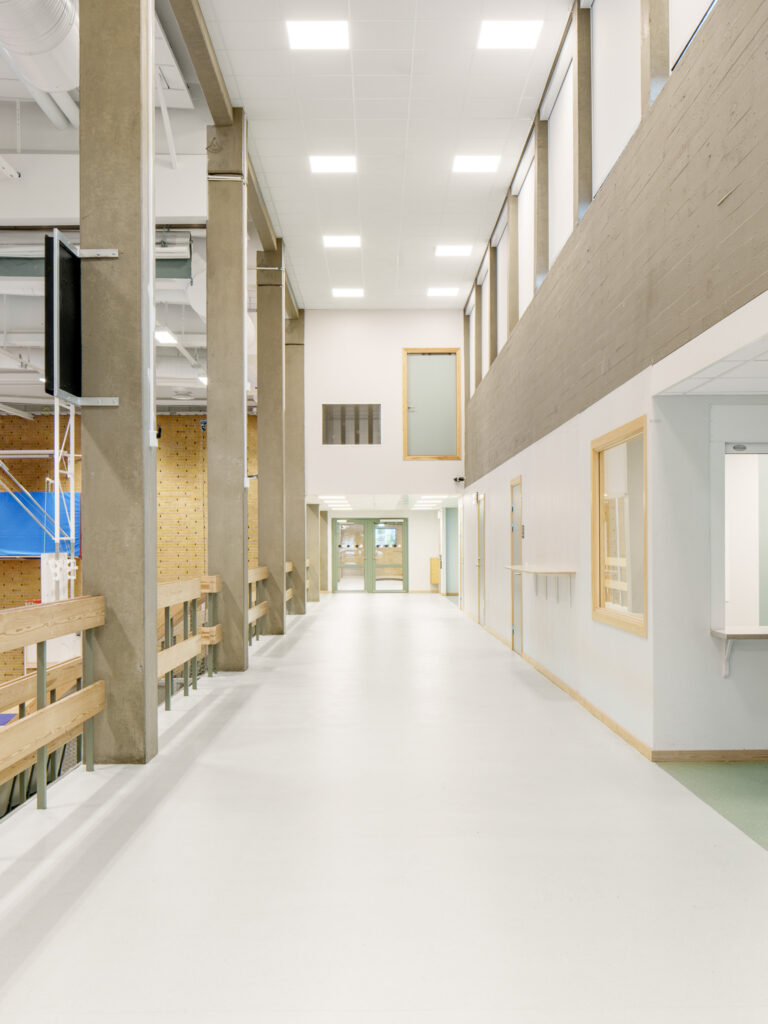 Projektet har innefattat bl.a. renovering av alla invändiga ytskikt och utbyte av fönster. Tegelmaterialet är genomgående för byggnaden både utvändigt och invändigt, men även detaljer av furu och plåt gör att projektet är karakteristiskt för Heleneholms och Nyréns arkitektur.